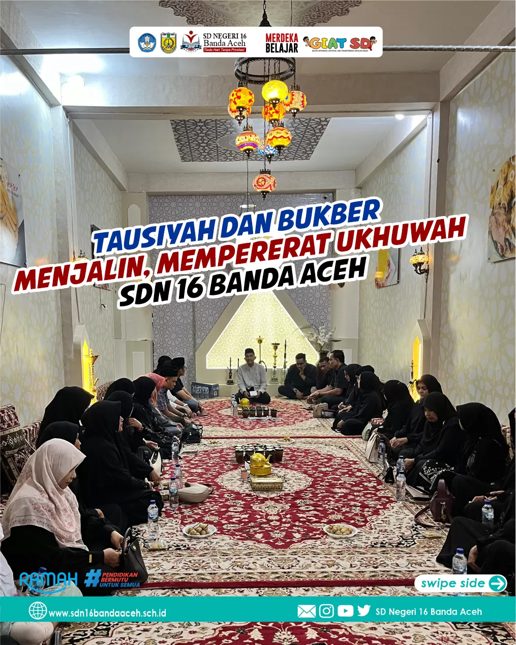 Semoga waktu yang kita infaqkan di SD Negeri 16 Banda Aceh, dipenuhi dengan meningkatnya pengetahuan dan perbuatan baik kita dan semoga kita menerima semua Hidayah, Rahmah dan Barakah dari Allah SWT sambil melengkapi peran dan tanggung jawab kita sebagai manajer, murabah, sarjana dan pencari pengetahuan … Insya Allah.