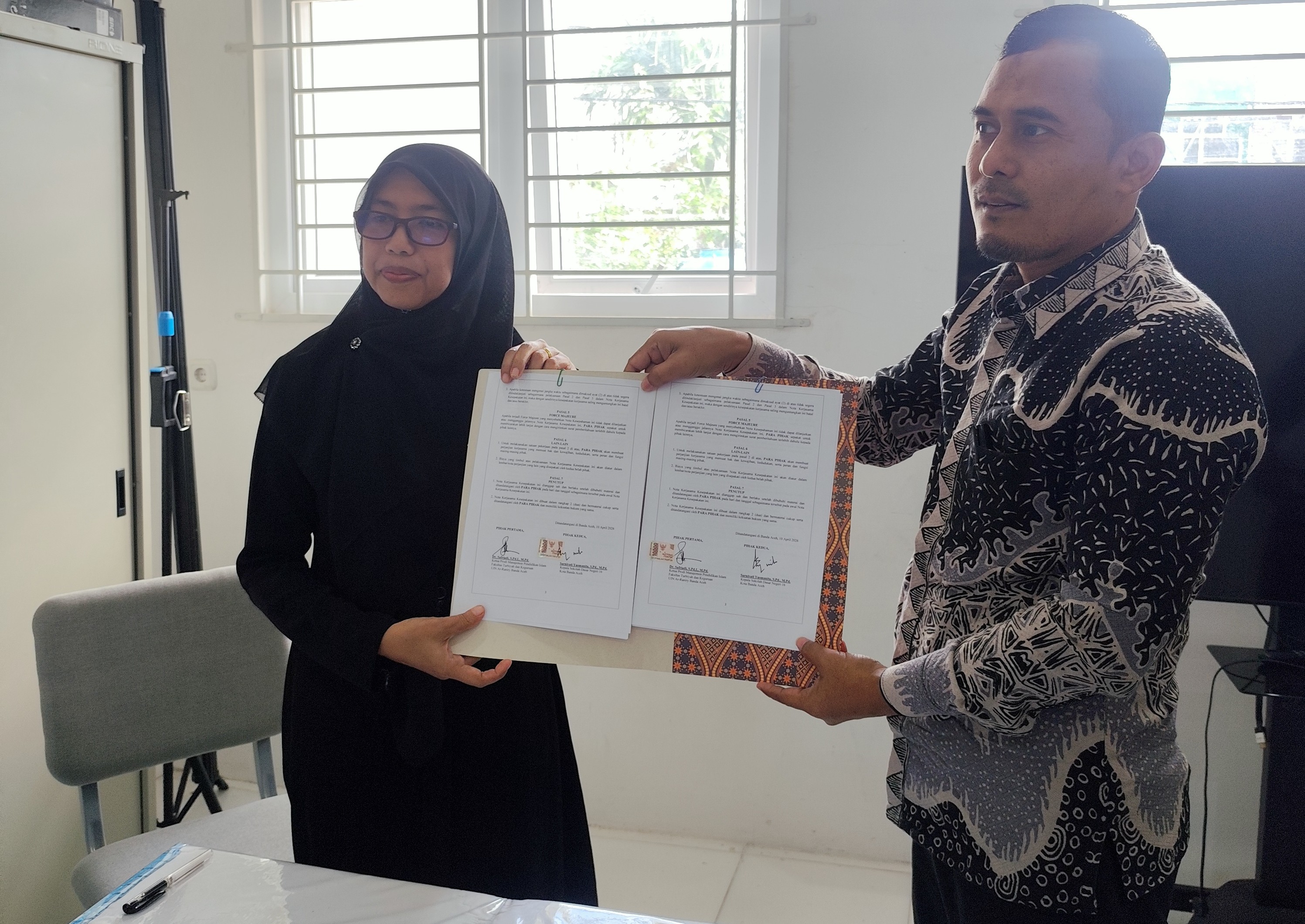 Kota Banda Aceh_Program Studi S1 Manajemen Pendidikan Islam (MPI) UIN Ar-Raniry Banda Aceh menandatangani Memorandum of Agreement (MoA) dengan SD Negeri 16 Banda Aceh sebagai bentuk kolaborasi dan sinergi dalam pelaksanaan kegiatan Tri Dharma Perguruan Tinggi, program magang mahasiswa, serta program kependidikan lainnya. Laboratorium Komputer SDN 16 Banda Aceh, Jumat (10/04/2026).